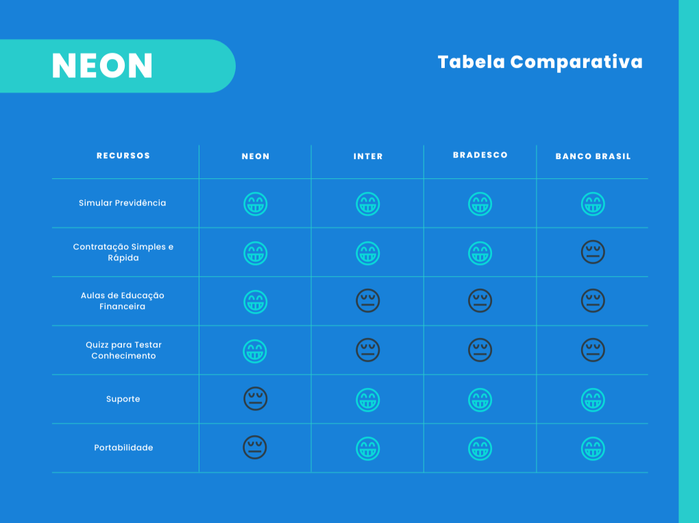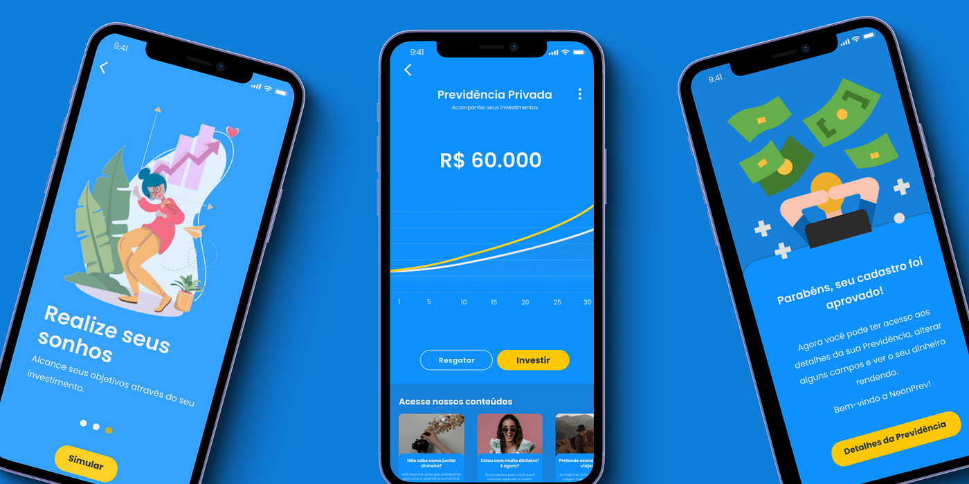 Escolhemos NeonPrev para a sessão criada dentro do aplicativo, porque trás fácil associação ao contexto de Previdência, além de possuir uma linguagem direta.