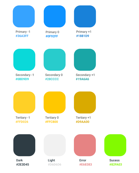 Nossa paleta de cores foi baseada na paleta já usada pelo próprio banco, sendo azul nossa cor primária, pois transmite para o usuário uma sensação de alegria, segurança, tranquilidade e confiança. A cor secundária é um verde mais claro, contrastando bem com o azul e formando um degradê agradável, utilizado em algumas telas. Além disso, essa cor reforça o sentimento de segurança e confiança que queremos transmitir para o usuário. Também selecionamos uma cor terciária, o amarelo, utilizado nas ilustrações e detalhes para trazer uma sensação de leveza.