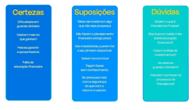 Nossa pesquisa qualitativa foi realizada na forma de entrevista online, assim podemos ouvir mais detalhadamente quais eram as dúvidas e dificuldades na hora da contratação de uma Previdência. Notamos que as maiores dúvidas estavam nas taxas e mecânica de resgate.