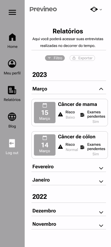 Com base nos insights citados, comecei a produzir uma primeira versão do novo sistema, totalmente voltado para Mobile para entendermos se a hierarquia visual estava alinhada com as expectativas de negócio.